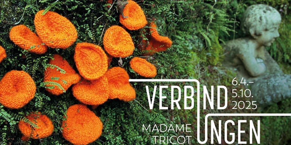 Tief verbunden fühlt sie sich auch mit der Kobesenmühle. Eine Saison lang spriessen nun ihre wundersamen Pilze zwischen den Blumen im Garten der Kobesenmühle, während in der Ausstellung die Tafel gedeckt wird für ein inspirierendes Zusammenspiel von Madame Tricots Strickkunst mit den Holzskulpturen von Wilhelm Lehmann.