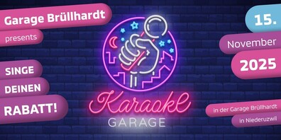 Musik- und Motorenpower vereinen sich am Samstag, 15. November 2025, wenn die Garage Brüllhardt in Niederuzwil unter dem Motto «Singe deinen Rabatt» von 9:00 bis 21:00 Uhr zur «Kar...