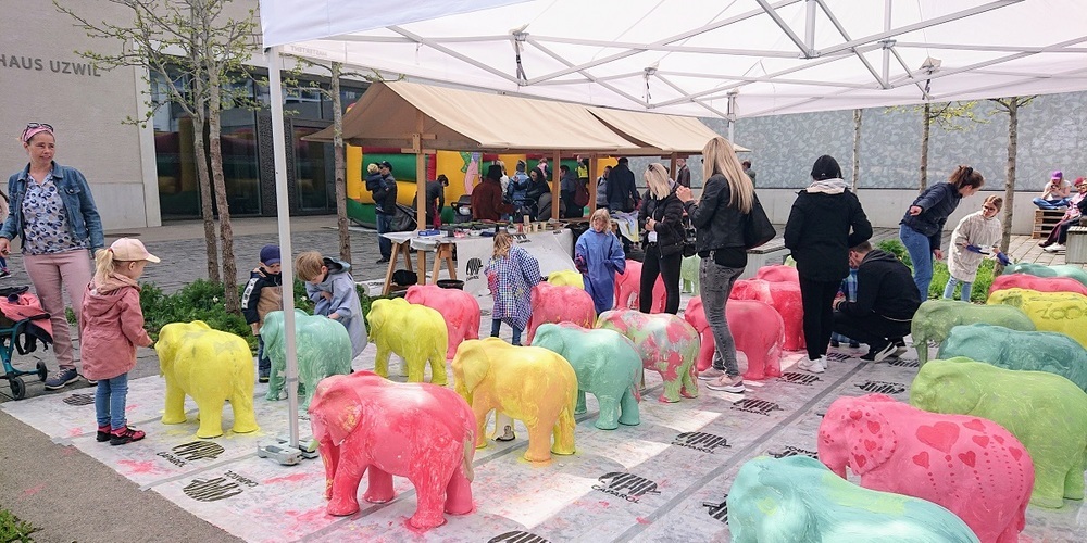 Die "Uzefanten" wurden von kleinen und grossen Künstlern farblich verzaubert.