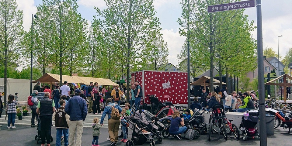 Viele Besucherinnen und Besucher kamen zu Fuss - Familien mit Kinderwagen - oder per Velo.