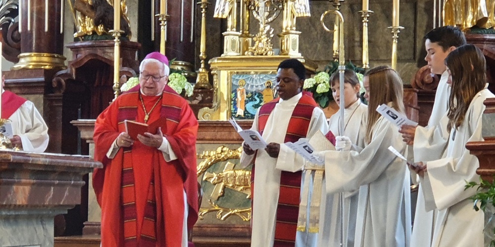 An verschiedenen Anlässen haben sich die jungen Menschen auf diesen Tag vorbereitet und den Sinn der Firmung erkannt, betonte der Bischof. In einer Gemeinschaft komme die Botschaft Jesus besonders zum Tragen. Dabei hätten sie viel über den Glauben und die Gemeinschaft erfahren, gestaunt, hinterfragt und einander auf spezielle Weise kennen gelernt. Jedes Einzelne durfte selber entscheiden, ob es diesen Weg gehen will, einen Weg, der fordert und fördert, einen Weg der Gemeinschaft und des Glaubens, der nicht immer einfach sein werde. Gemeinschaft schenke Liebe und Geborgenheit. In diese Gemeinschaft komme die Botschaft «Jesus ist für mich da». Gemeinsam versprachen die Firmandinnen und Firmanden die Bereitschaft, im Dienste Jesu zu stehen, sich und ihre Fähigkeiten einzusetzen für die Mitmenschen. «Gott ist Vater und Mutter zugleich, er begleitet jedes Einzelne durchs Leben. Heute ist euer Pfingsttag, ein grosses Geschenkt», betonte der Bischof.