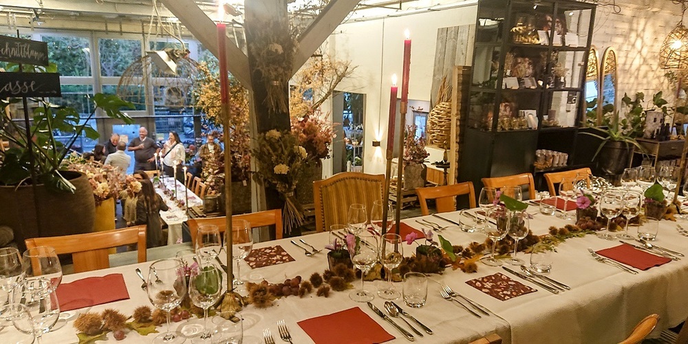 Für zweimal roch es am 21. und 22. Oktober 2022 im rosa braun by Blumen Nützi in Wil nicht nach Blumen, sondern nach leckeren Gerichten, die von La Moka zubereitet wurden: Antipasti, Kürbiscremesuppe, Brasato mit Safran-Risotto und eine Dolce-Kombination. Dazu in kurzen, unterhaltsamen Statements Informationen zu den kredenzten Weinen, zum Kaffee, zur gastgebenden Firma und zur Kunst des Blumenverschenkens. Dies in einer lockeren, gediegenen und gesprächsfördernden Atmosphäre mit Gästen, die voll auf ihre Kosten kamen und auch neue spannende Menschen kennenlernen durften.