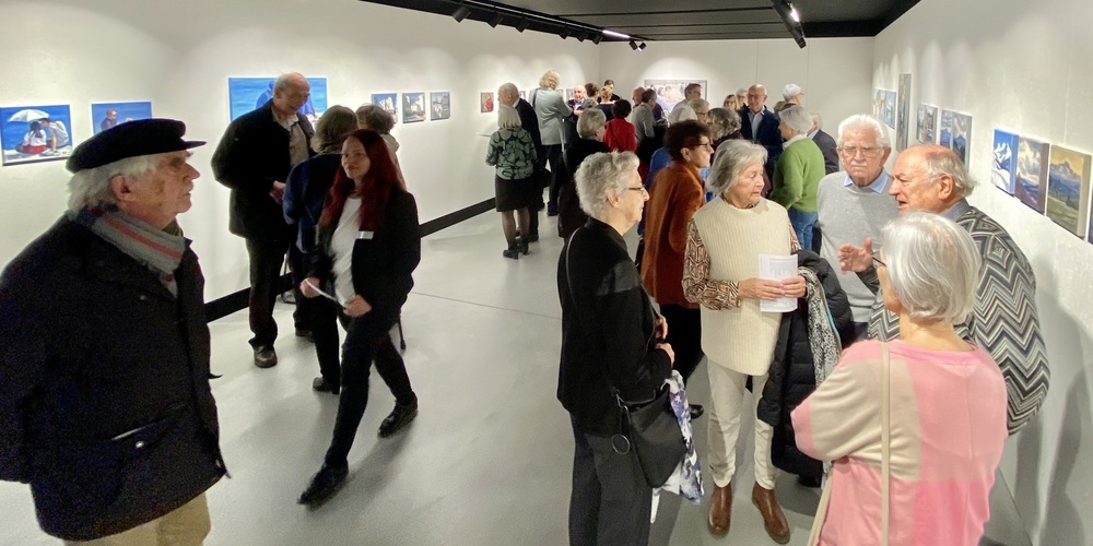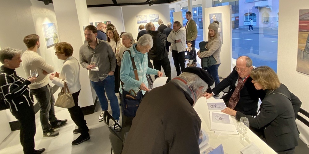 Beim Apéro bot sich Gelegenheit, die Werke des Künstlers unter die Lupe zu nehmen und sich allenfalls einen Kauf zu überlegen.