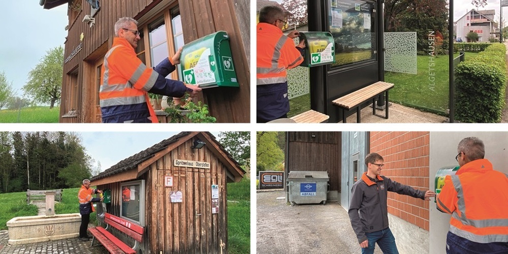 Verschiedene Defis im öffentlichen Raum stehen für Notfälle parat. Im letzten Dezember kamen Defis im Stolzenberg, in Algetshausen, Nieder- und Oberstetten dazu. Damit stehen nun in jedem der sieben Uzwiler Dörfer diese lebensrettenden Geräte im öffentlichen Raum zur Verfügung. Besonders erfreulich: In Niederstetten bei der Schreinerei Egli und im Stolzenberg bei der Holzbildhauerei Blättler konnten Defis unkompliziert an privaten Gebäuden angebracht werden, weil die Gemeinde dort selber keine geeigneten Standorte hat.