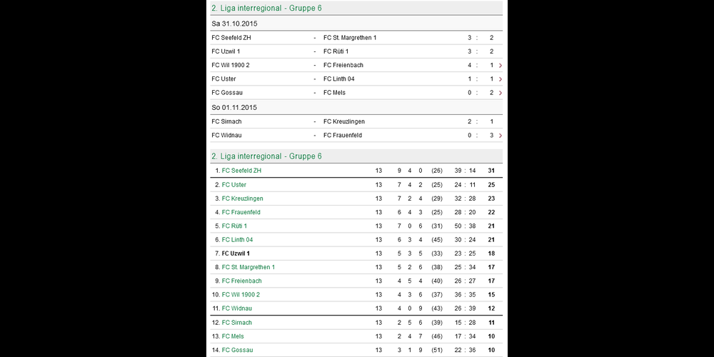 Ein ausgezeichneter Abschluss der 2. Liga interregional-Vorrunde gelang dem FC Uzwil mit dem 3:2-Heimsieg über den starken FC Rüti aus dem Zürcher Oberland. Damit festigte der Aufsteiger seinen Platz im Mittelfeld (siehe Tabelle unten).