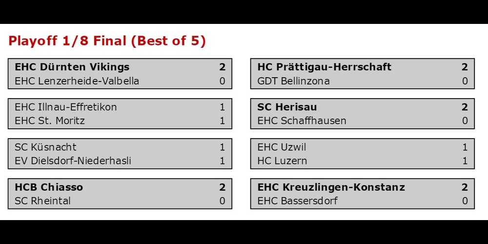 Modus „Best-of-Five“, d.h. wer als erster drei Siege verzeichnet, kommt in den Playoff-Viertelfinal.Game 1: Dienstag, 9. Februar 2016