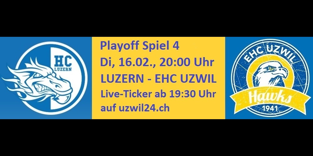 Nachdem der EHC Uzwil am Montagvormittag den Rückzug des Protests gegen die Wertung des Spiel 3 gemeldet hat, kommt es am Dienstagabend beim Playoff-Stand von 1:2 für Luzern zum Spiel 4 in der Leuchtenstadt. Will der EHC Uzwil die Viertelfinals erreichen, müssen die Hawks gewinnen, damit es am Donnerstag ein Spiel 5 in der Uzehalle geben wird. Wie die Hawks beim 6:1-Sieg in Luzern gezeigt haben, sind die Chancen auf einen weiteren Auswärtssieg intakt. Hopp Uzwil!