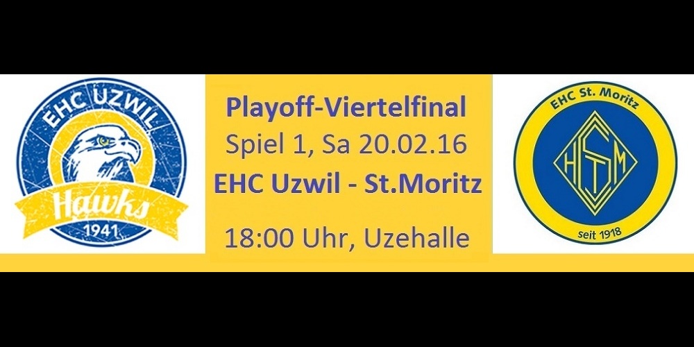 Dank besserer Platzierung in der Liga-Qualifikation geniesst der EHC Uzwil auch im Viertelfinal den Heimvorteil in der ersten Spielrunde. Auch wenn es kein Zuckerschlecken gegen die kampfstarken Bündner wird, liegt der Gegner aus dem Engadin sicher in Reichweite für die Hawks. In den beiden Partien der Qualifikation konnte sich der EHC Uzwil durchsetzen, nämlich 6:4 im Saisonauftaktspiel in St. Moritz und Anfang Dezember mit 9:2 in der Uzehalle. St. Moritz konnte sich in den Playoff-Achtelfinals ebenfalls steigern und "bodigte" Illnau-Effretikon ebenfalls erst im Spiel 5. Die Zuschauer dürfen als ein spannendes und unterhaltsames Spiel zweier kampfstarken Mannschaften erwarten. Der Uzwiler Head-Coach Mischa Wasserfallen wird sich gewiss wieder eine vielversprechende Taktik einfallen lassen. Und wenn die Unterstützung von den Rängen auch noch stimmt, stehen die Chancen für ein Erfolgserlebnis der Hawks sicher gut.