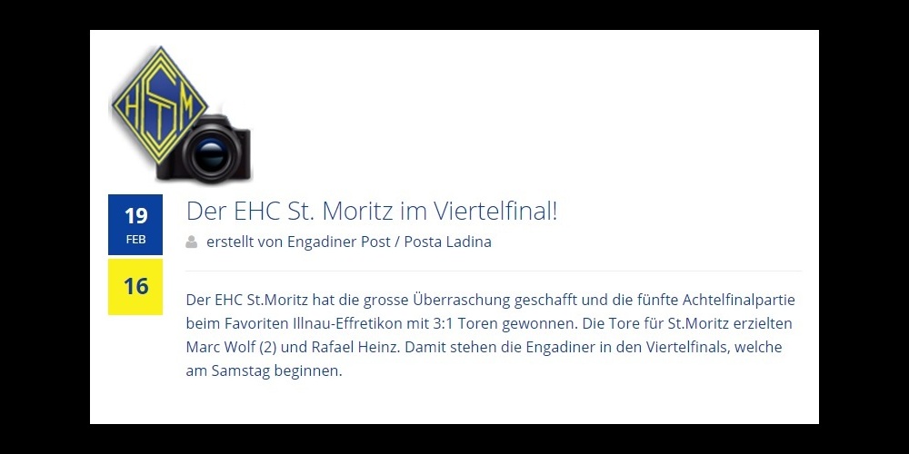 Check auf Check, Tor auf Tor, Spiel auf Spiel - it is Playoff-Time! Nach dem 4:3-Sieg im entscheidenden Spiel gegen den HC Luzern vom Donnerstagabend in der Uzehalle geht es für den EHC Uzwil bereits am Samstag, 20. Februar 2016 weiter mit dem Spiel 1 der Playoff-Viertelfinals. Playoff-Gegner ist der EHC St. Moritz und Spielbeginn ist um 18:00 Uhr in der Uzehalle. Die Hawks haben eine "volle Hütte" verdient. Für Stimmung und Spannung ist gesorgt!