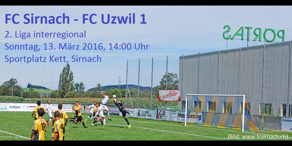 Der FC Uzwil kann mit guten Vorzeichen in die Rückrunde starten. Der 4:0-Sieg über den FC Arbon im letzten Testspiel und die Erinnerung an den 2:0-Sieg gegen den FC Sirnach in der Vorrunde sind gute Voraussetzungen. Auf der anderen Seite dürfen die Südthurgauer nicht unterschätzt werden. Gerade die zahlreichen Turbulenzen und Trainerwechsel machen das Team zwar anfällig, aber auch unberechenbar. Neuer Trainer ist seit Anfang 2016 der Winterthurer Jürg Stücheli. Eine spannende Affiche also und gewiss auch ein guter Grund, das Top-Team des FC Uzwil auch im nahen Sirnach zu unterstützen. FCU-Trainer René Benz und sein Team werden es schätzen. Hopp Uzwil!