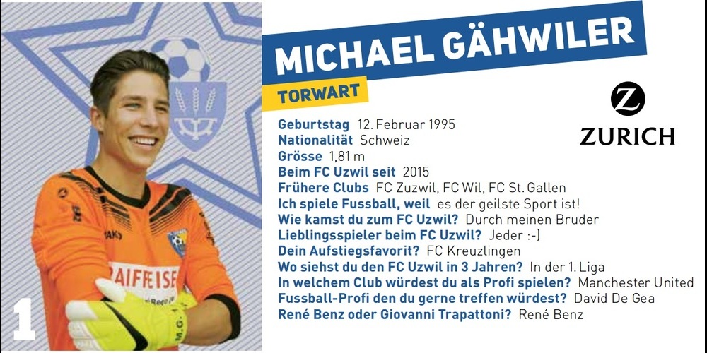 Am kommenden Sonntag, 13. März 2016, kommt es in der 2. Liga interregional zum Lokalderby zwischen dem FC Uzwil und dem Gastgeber FC Sirnach. Nach der witterungsbedingten Absage des Heimspiels vom letzten Samstag gegen den FC Mels startet der FC Uzwil jetzt mit einem Auswärtsspiel in die Rückrunde. Die Partie gegen die unberechenbaren Gegner aus dem Thurgau wird auf dem Sportplatz Kett, Sirnach, um 14:00 Uhr angepfiffen. - Wir stellen vor: Michael Gähwiler, Torhüter, 1. Mannschaft des FC Uzwil.