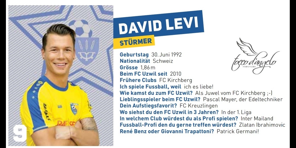 Der FC Uzwil ist in Form! Nach dem hervorragenden Start in die Rückrunde mit zehn Punkten aus den ersten vier Spielen hat sich der FC Uzwil an die Spitzengruppe herangeschlichen. Mit dem FC Uster wartet nun am Samstag, 9. April 2016, ein weiteres grosses Kaliber auf die St.Galler. Die Zürcher liegen auf Platz 2 der Tabelle, vier Punkte vor dem FC Uzwil. Die Partie wird im Stadion Buchholz, Uster, um 17:00 Uhr angepfiffen. - Wir stellen heute vor: David Levi, Stürmer.