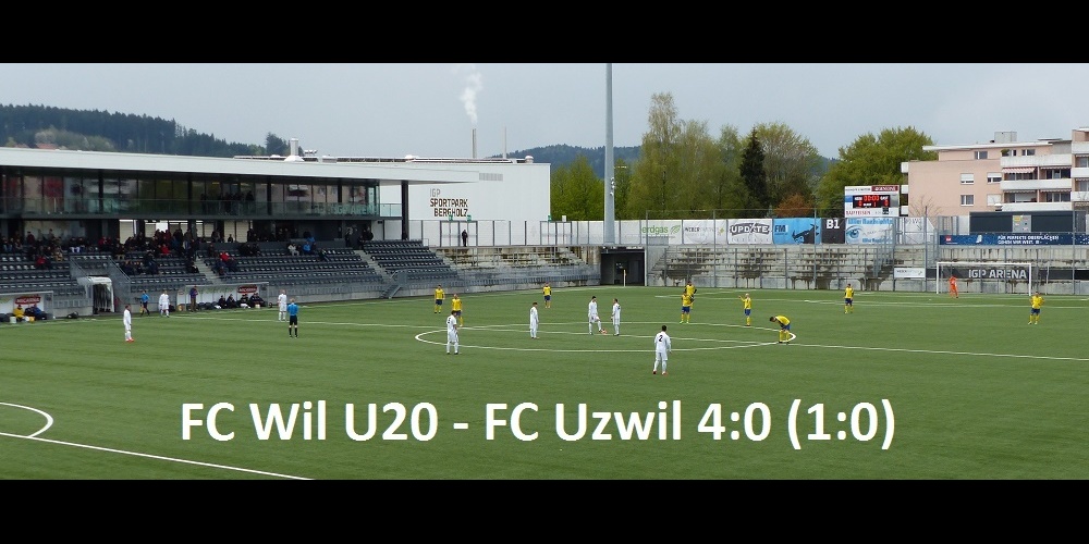 Der Höhenflug des FC Uzwil in der 2. Liga interregional wurde am Sonntag, 24. April 2016, in der IGP-Arena Bergholzpark durch den FC Wil U20 abrupt gebremst - aber keineswegs gestoppt. War die Partie nach der ersten Halbzeit beim Stand von 0:1 noch offen, weil auch Uzwil durchaus Chancen hatte, passte das Uzwiler Spiel nach der Pause zum aufkommenden Regen und Schneegestöber. Schlussendlich resultierte eine zu hohe 0:4-Klatsche. Diesen Ausrutscher muss das Team von Trainer René Benz schnell vergessen und sich wieder auf die eigenen Stärken besinnen, die heute nicht zum Tragen gekommen sind. Kopf hoch!