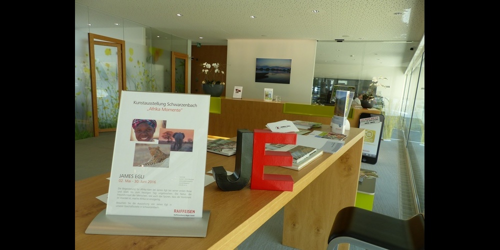 Noch bis Ende Juni 2016 bietet sich in der Geschäftsstelle Schwarzenbach der Raiffeisenbank Regio Uzwil Gelegenheit, die Kunstausstellung des Oberuzwiler "Lichtergrafen" James Egli zu geniessen. Eine Reihe von eindrucksvollen Fotografien entführt die Betrachter in den afrikanischen Kontinent. James Egli "transportiert" mit seinen Bildern imposante Eindrücke von den Menschen und von der Natur Afrikas. Kommen Sie auch auf Entdeckungsreise!