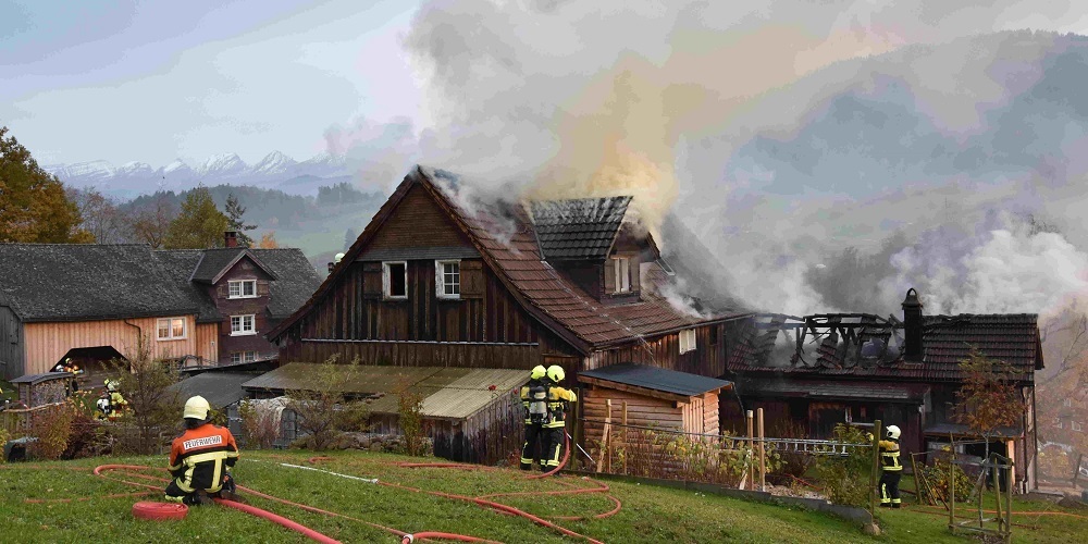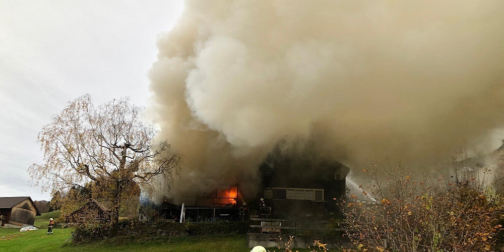 (Kapo SG) Mehrere Feuerwehren mit über 75 Angehörigen rückten aus. Die beiden Ehepaare hatten das Gebäude zu diesem Zeitpunkt bereits verlassen. Sie konnten durch Anwohner und Rettungskräfte in Sicherheit gebracht werden. Das Feuer breitete sich im älteren Holzhaus sehr schnell aus und entwickelte sich zu einem Vollbrand. Die Rauchentwicklung war äusserst stark. In der Umgebung mussten deswegen kurzfristig die Bewohner aufgefordert werden, Türen und Fenster zu schliessen.