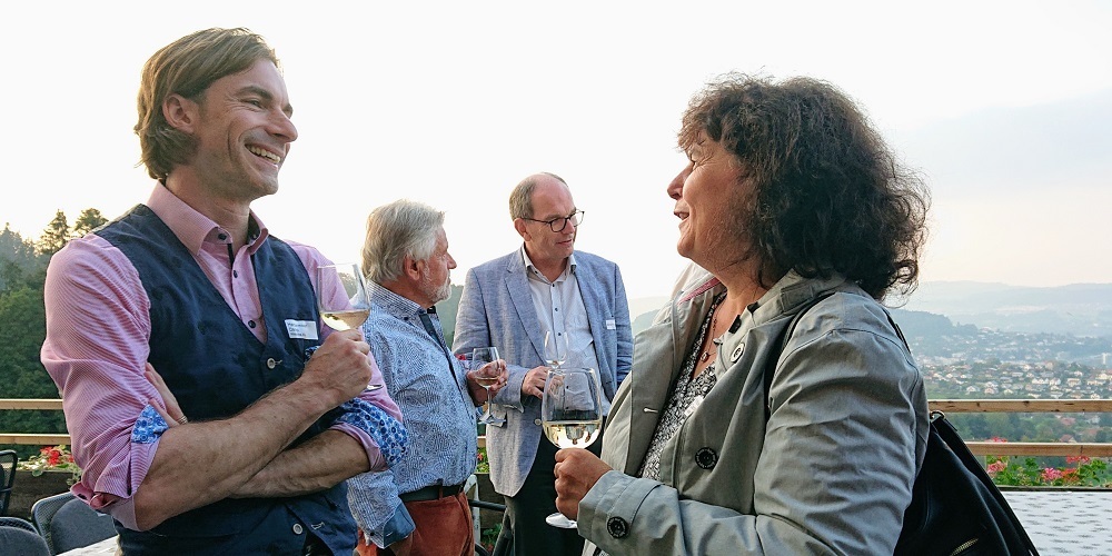 Nach der Begrüssung durch Vorstandsmitglied Niklaus Amrhein übernahm Johannes Gunzenreiner in gewohnt souveräner Weise die Moderation des Abends. Er präsentierte eine vom Vorstand vorbereitete Zusammenfassung des Lebenslaufs von Ernst Dobler und die bislang wichtigsten Etappen auf seinem privaten, beruflichen und politischen Weg. Dank und Lob erhielt Ernst Dobler anschliessend in mehreren Videobotschaften, die gemacht worden waren, falls die Feier nur virtuell hätte durchgeführt werden können.