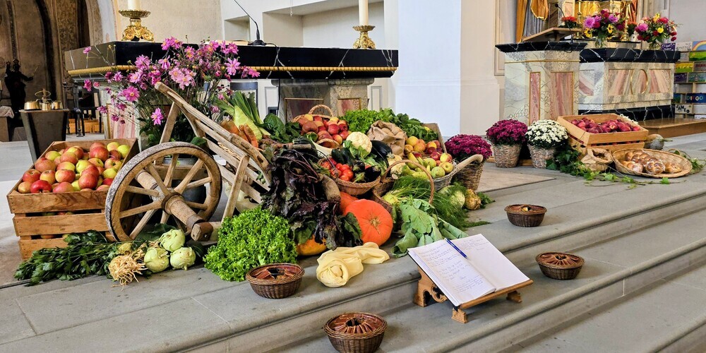Der Altar war eindrucksvoll mit Erntegaben geschmückt – liebevoll arrangiert von Gisela Loser und Monika Künzle. Zahlreiche Einwohnerinnen und Einwohner hatten zuvor Gemüse, Früchte, Blumen und Käse in die Kirche gebracht. Ein Teil dieser Gaben wurde nach dem Gottesdienst an das Kapuzinerkloster Wil gespendet.
