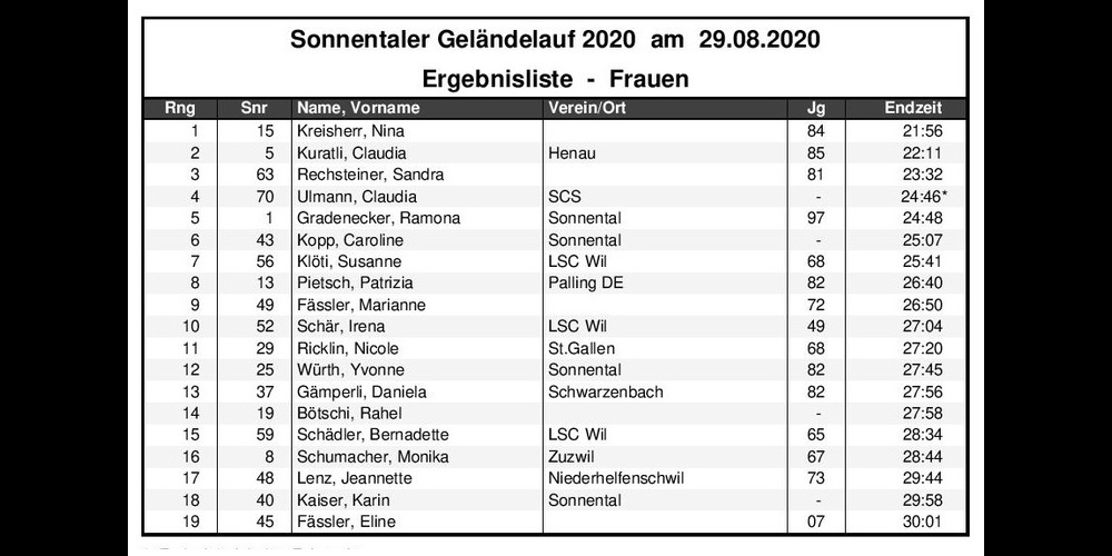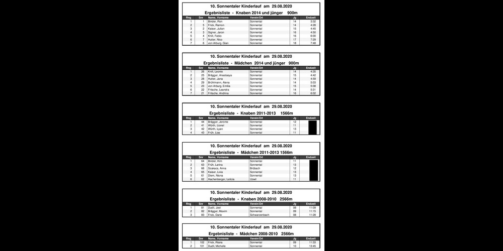 Nachfolgend finden Sie Impressionen und die kompletten Ranglisten. Ein grosses Dankeschön geht an dieser Stelle an das OK für die gelungene Durchführung des Sonnentalerlaufs 2020!