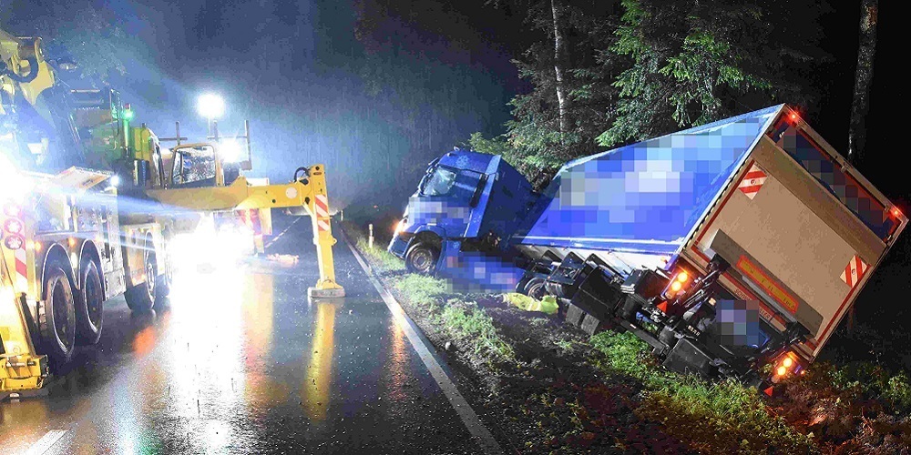 (Kapo SG) Am Samstagmorgen, 11. Juli 2020, kurz vor 3 Uhr, hat sich auf der Staatsstrasse bei Niederbüren ein Selbstunfall mit einem Sattelmotorfahrzeug ereignet. Dabei hatte der Fahrer grosses Glück, dass sich die in Schräglage befindende Kombination nicht überschlug.