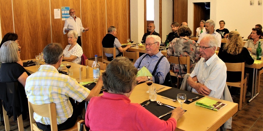 Im Pfarreiheim gesellte sich ein Grossteil der Bezüger der Alterswohnungen zu den Offiziellen. Die Teilnehmenden konnten bei einem Apéro Kontakte pflegen und sie wurden anschliessend mit einem vorzüglichen Abendessen aus der Küche des Hotels Ochsen verwöhnt. Im Verlaufe des Abends blickte Genossenschaftspräsident Werner Dintheer mit Befriedigung auf die Geschichte des Projekts Wohnen 60plus zurück: „Die Entstehung des Projekts geht in die Jahre 2012 bis 2015 zurück. Die Gemeinde Uzwil lotete die Möglichkeiten für die Erstellung von Alterswohnungen aus. Die katholische Kirchgemeinde stellte das Grundstück an der Fichtenstrasse im Baurecht zur Verfügung. In einer Umfrage konnte sich die Bevölkerung zu ihren Interessen, Wohnungsgrössen, und Preisgestaltung äussern. Es gab viele positive Rückmeldungen und die Leute zeigten sich begeistert über das Vorhaben“.