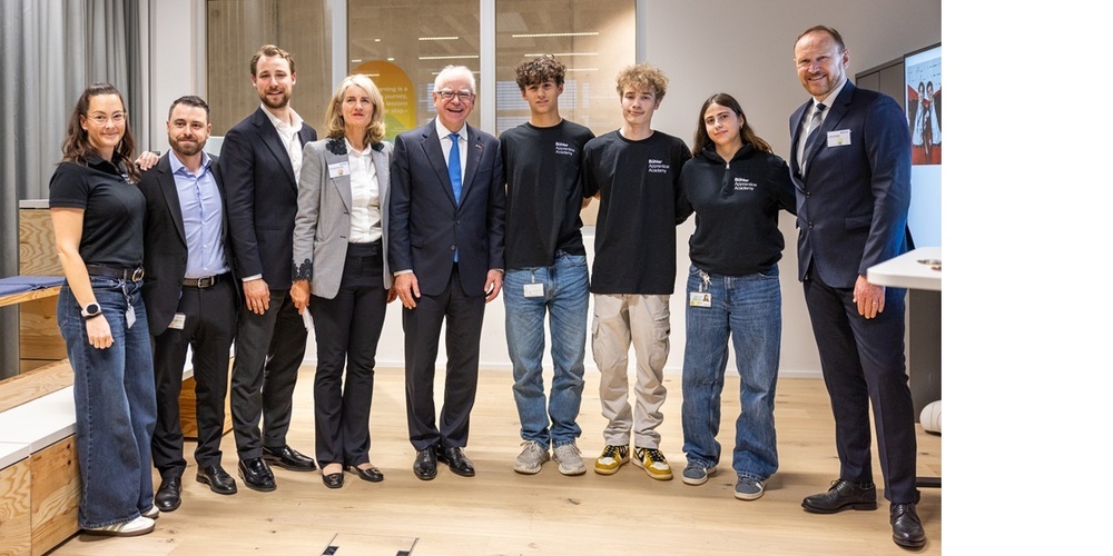 Gouverneur Walz wurde von einer Delegation aus Vertreterinnen und Vertretern von Wirtschaftsverbänden und Behörden aus Minnesota begleitet. Die Gruppe verbrachte zwei Stunden im Hauptsitz von Bühler und besuchte den Innovationscampus CUBIC, Forschungs- und Ausbildungszentren sowie das Bühler Energy Center, das Zentrum des Unternehmens für Berufsausbildung und Erwachsenenbildung. Gouverneur Walz und seine Delegation trafen Auszubildende und Ausbilder, erhielten Einblick in Schulungen und diskutierten, wie die strukturierte Kombination aus Unterricht im Klassenzimmer und bezahltem Lernen am Arbeitsplatz in der Praxis organisiert ist.