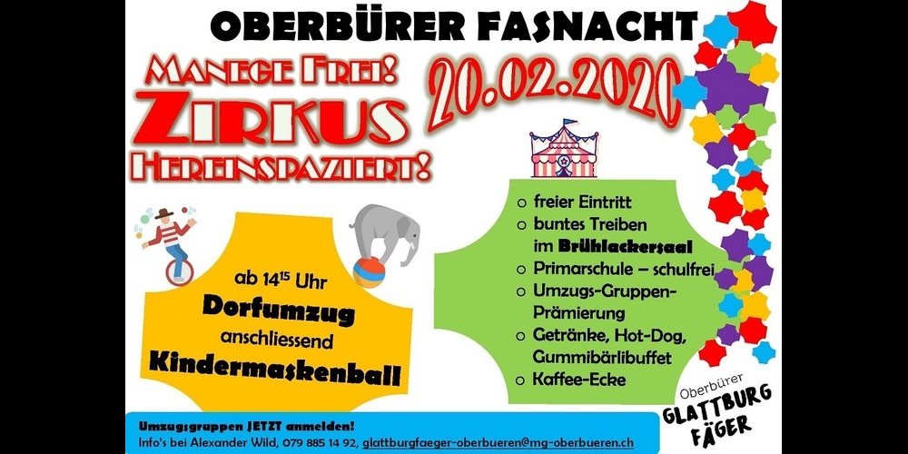 Wer am Umzug teilnehmen möchte, darf sich unter der Adresse glattburgfaeger-oberbueren@mg-oberbueren.ch melden. Wir freuen uns über viele Kinder- und andere Umzugsgruppen. Natürlich können Sie das Treiben auch vom Strassenrand aus beobachten.