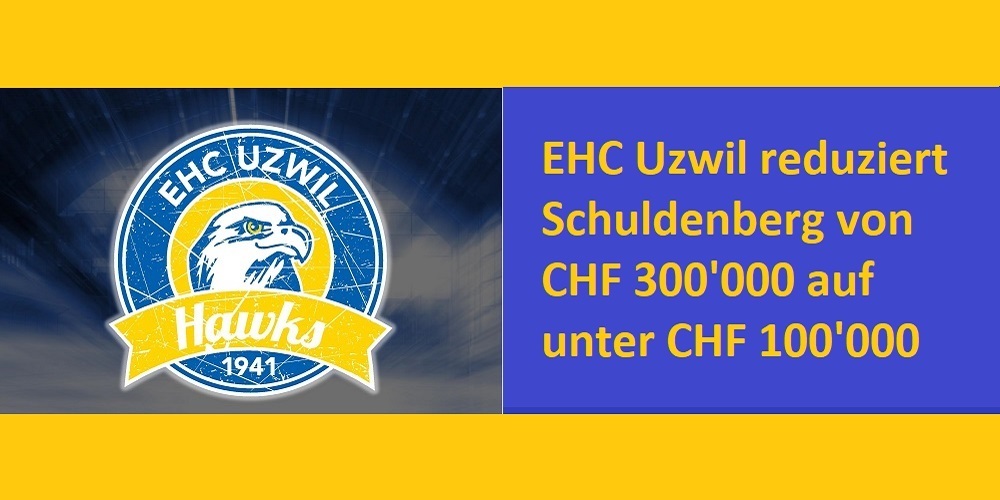 Dem EHC Uzwil ist es gelungen, durch eine rigorose Ausgaben- und Kostenkontrolle, die Schuldenlast erheblich zu verringen. Massgeblich dazu beigetragen hat der Rückzug der 1. Liga-Mannschaft. Dadurch war es möglich, die ausstehenden Forderungen bis Ende 2019 um rund 70% auf unter CHF 100'000 zu reduzieren.