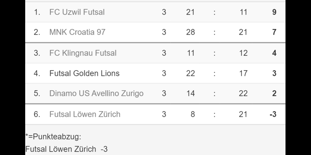 Futsal Golden Lions - Dinamo US Avellino Zurigo 9:1 Telegramm