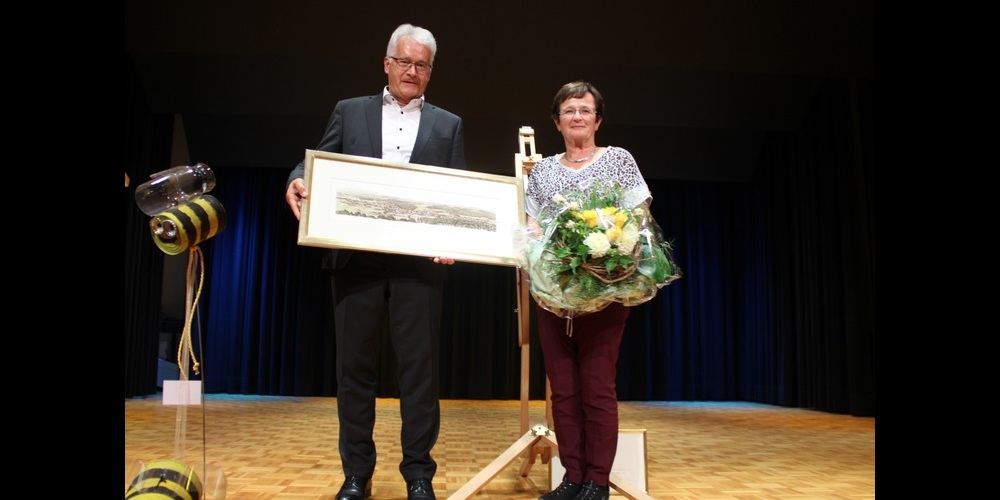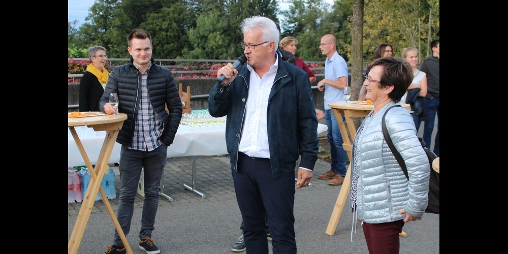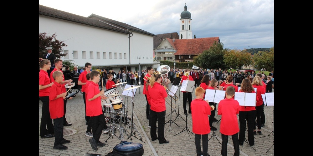 Die offizielle Abschiedsfeier mit der Bevölkerung begann mit einem Apéro auf dem Schulhausplatz. Die Jugendmusik unter der Leitung von Reto Städler eröffnete das Fest mit einigen Darbietungen, bevor Organisator Michael Huber die Bevölkerung und die Gäste begrüsste. Niklaus Hollenstein zeigte sich überrascht von den vielen Aktivitäten und den zahlreichen Teilnehmenden: „Dieser heutige Tag mit den überraschenden Events hat mich fast erschlagen. Wer mich kennt weiss, dass dies nur selten der Fall ist“. Im Gemeindesaal, den Primarschüler mit selber gebastelten Papierbienen geschmückt hatten, versammelten sich rund 300 Personen. Die MG Niederbüren umrahmte den Anlass mit vielfältigen Melodien. Der langjährige Gemeinderat Richard Werz, der acht Jahre als Vizepräsident mit Hollenstein zusammenarbeitete, würdigte im Rückblick auf seine 23-jährige Amtszeit seine Verdienste. „Niederbüren hat sich während deiner Amtszeit sehr positiv zu einem stolzen und anschaulichen Dorf entwickelt. Wir haben einen schönen Gemeindesaal und eine grosszügige Turnhalle, unsere Strassen sind gepflegt, das Abwassersystem und die Stromversorgung funktionieren. Die Rekultivierung der ehemaligen Kiesgrube war dir ein wichtiges Anliegen, das zu Sport- und Nutzungsmöglichkeiten führte“, erwähnte Werz einige Höhepunkte. Auch für die Vereine habe er immer ein offenes Ohr. Er habe auf kompetente Mitarbeiter und die Unterstützung des Gemeinderats und der Bevölkerung zählen können