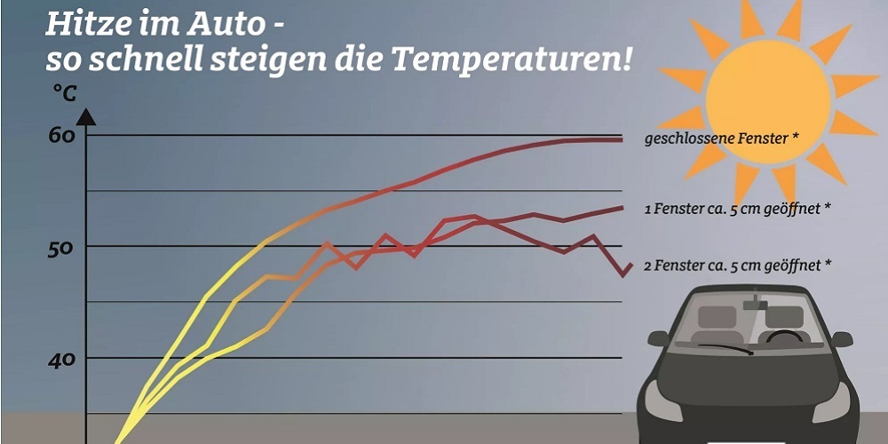 Das Fahren bei offenem Fenster gibt zwar braune Unterarme und ein Gefühl von Freiheit, aber es kühlt nicht ab. Ohne Klimaanlage Fenster ca. 5 cm öffnen, damit der Temperaturanstieg im Auto langsamer erfolgt.