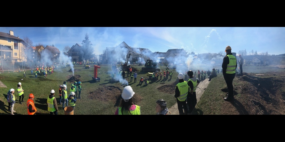Der Spatenstich für den Schulhaus-Neubau am 12. März 2019 in Schwarzenbach entwickelte sich dank des prächtigen Frühlingswetters und des speziellen Rahmenprogramms zu einem veritablen Volksfest. Riesige Vorfreude auch bei den Jugendlichen, die grossenteils noch in den Genuss des neuen Schulhauses kommen werden.