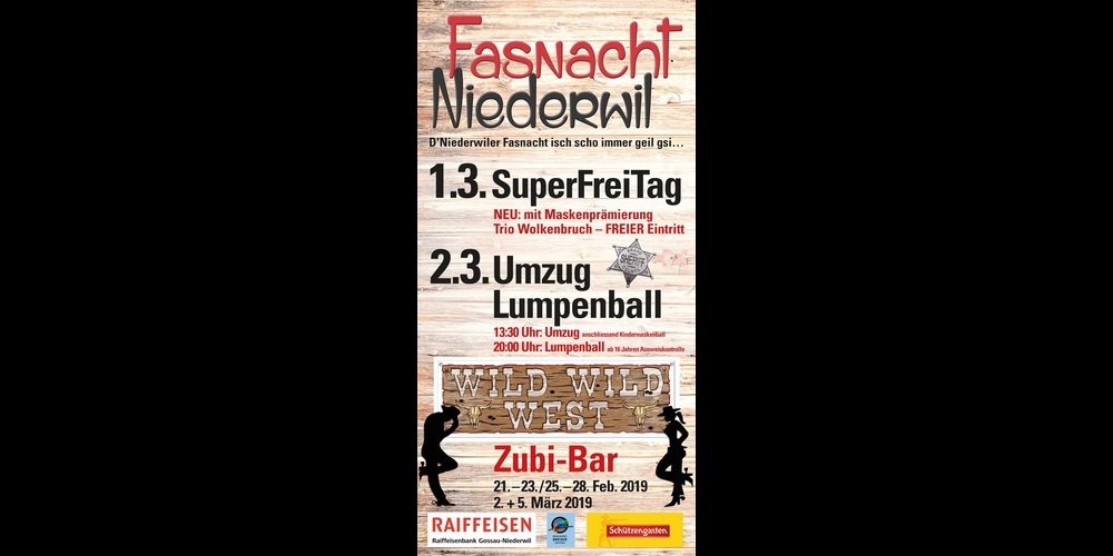 um 13:30 Uhr startet der Umzug durchs Dorf, gefolgt vom Kindermaskenball. Und Abend folgt der legendäre Lumpenball ab 20.00 Uhr (ab 16 Jahren).