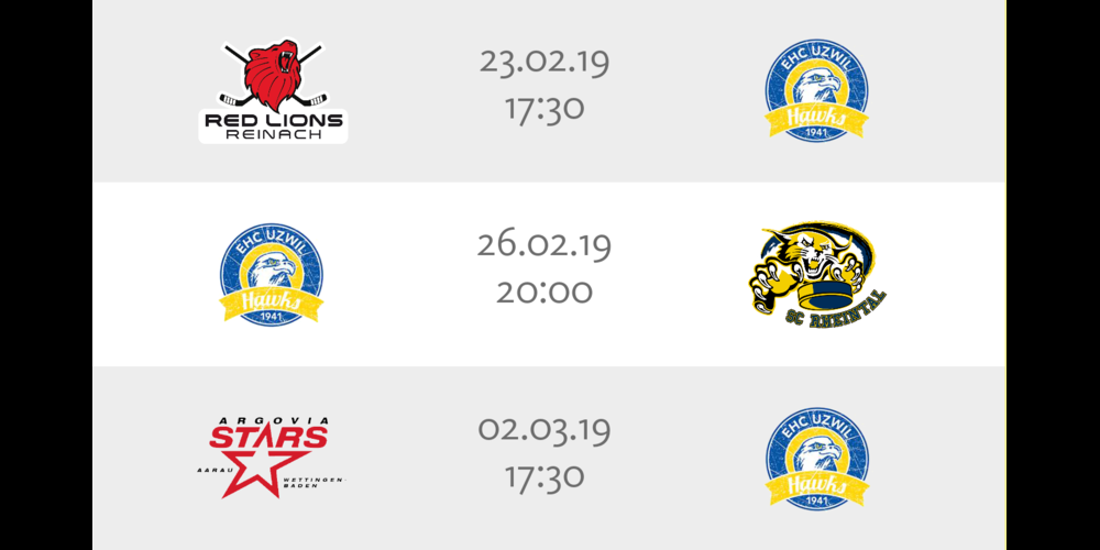 Für die Hawks ist dieses Spiel eine Formsache. Weit wichtiger ist die Partie vom kommenden Dienstag, 26. Februar 2019, in der Uzehalle. An diesem letzten Heimspiel der Saison 2018/19 wollen die Hawks gegen den SC Rheintal ihren Anhängern nochmals ein Spektakel bieten. Die Fans ihrerseits haben Gelegenheit, ihr Team nochmals zu unterstützen. Ein Team, das uns diese Saison so viel Freude bereitet hat. Hopp Uzwil!