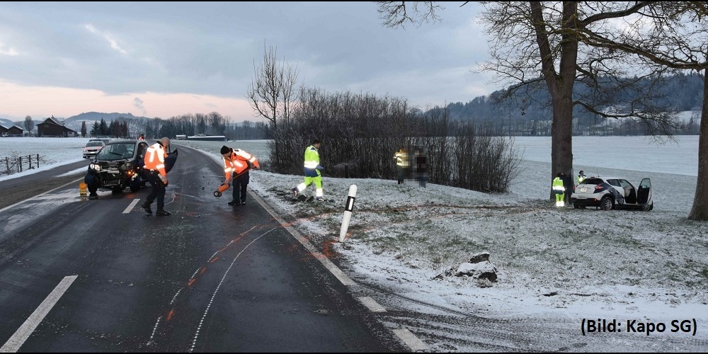 Am Freitagmorgen, 18. Januar 2019, kurz nach 07:35 Uhr, sind auf Staatsstrasse in Niederbüren zwei Autos frontal miteinander kollidiert. Zwei Personen wurden vom Rettungsdienst ins Spital gebracht. Eine Fahrerin suchte selbständig einen Arzt auf. Beide Autos wurden total beschädigt.