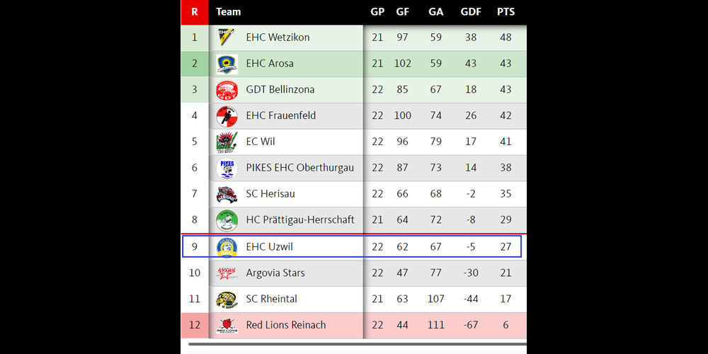 Den einzigen Uzwiler Treffer erzielte Robin Reinmann bereits in der 3. Minute und dies in Unterzahl. Nach zwei Dritteln stand es immer noch 1:1 und die Vorentscheidung fiel in der 42. und 43. Minute, als den Aargauern ein Doppelschlag gelang. Der vierte Treffer ging in der Schlussminute ins leere Uzwiler Gehäuse, als die Hawks für Torhüter Schenkel einen sechsten Feldspieler auf dem Eis hatten.
