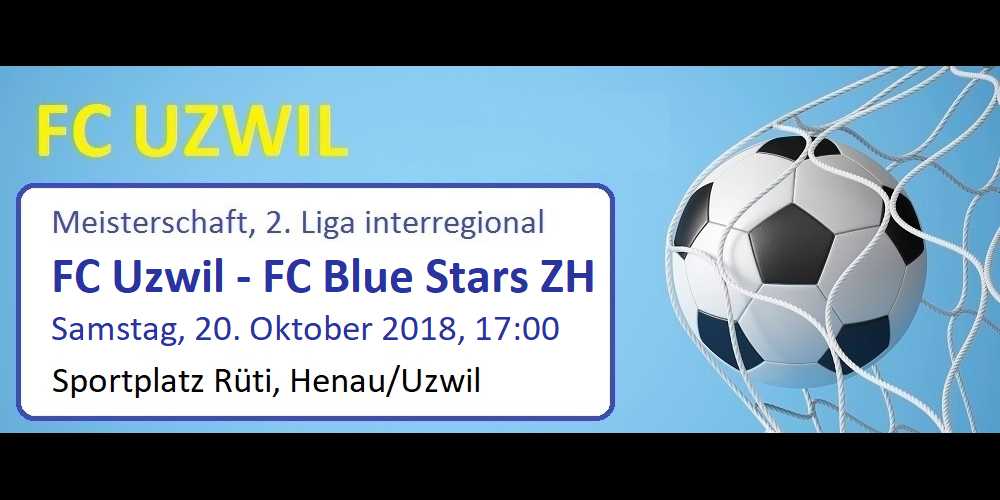 Samstag, 20. Oktober 2018, 17:00 Uhr: FC Uzwil - FC Blue Stars ZH 2. Liga interregional Sportplatz Rüti, Henau