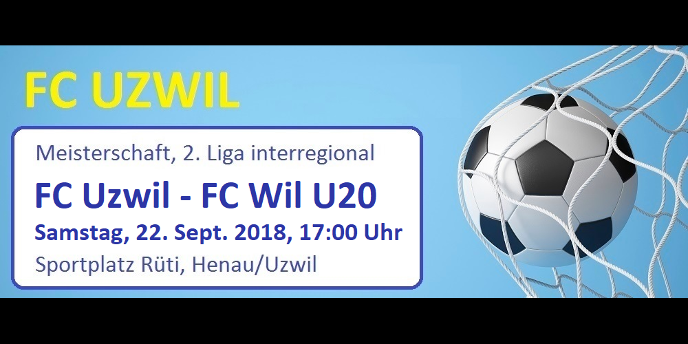 Samstag, 22. September 2018, 17:00 Uhr: FC Uzwil - FC Wil U20 2. Liga interregional Sportplatz Rüti, Henau