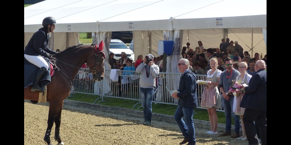 Schon am Freitag und Samstag zeigten die teilnehmenden Reiterinnen und Reiter mit ihren Pferden hervorragende Leistungen. Am Sonntag war dann auch das Wetter noch perfekt - wie die Bilder zeigen. Nach 2016 darf der Reitclub Uzwil auch die zweite Durchführung der Uzwiler Pferdesporttage vom 24. bis 26. August 2018 auf den Anlagen des HealthBalance GesundheitsZentrums als Erfolg verbuchen. - Einer der Höhepunkt des Wochenendes war im Rahmenprogramm angesiedelt, denn der Reitclub Uzwil konnte seine neue Standarte einweihen.
