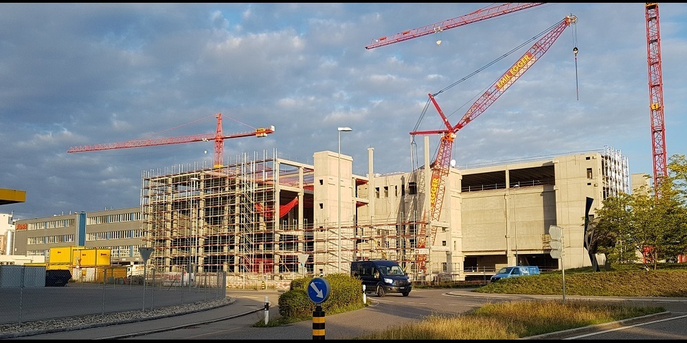 Das neue FUST Logistik-Zentrum bei der Zufahrt zur A1 in Oberbüren nimmt immer mehr Gestalt. Ein imponierender Bau zeichnet sich, der bald einmal die Lager und die Spedition für den Online-Shop fust.ch beherbergen wird.