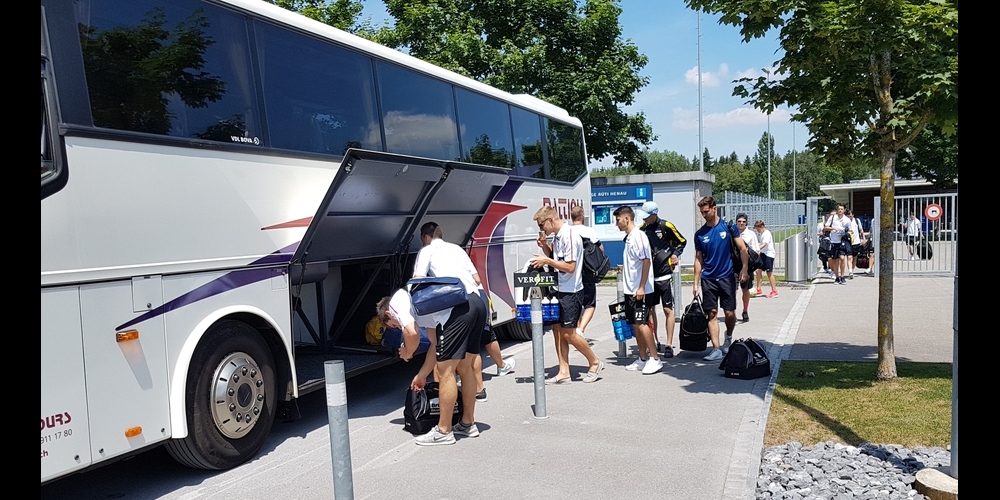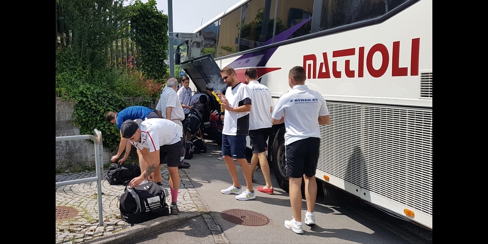 Der Car ist bereit und das Team kommt frisch gestärkt aus dem Rütitreff. Abfahrt in Richtung Innerschweiz um 13:18 Uhr.