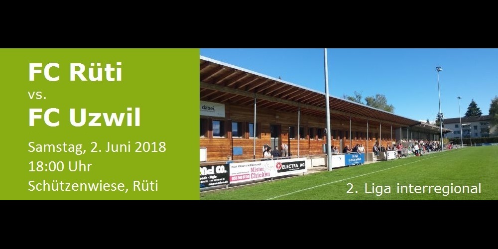 Am Samstag, 2. Juni 2018, reist der FC Uzwil für die zweitletzten Runde der 2. Liga interregional Meisterschaft zum FC Rüti ins Zürcher Oberland. Wie alle Spiele der Liga beginnt die Partie auf der Schützenwiese um 18:00 Uhr.