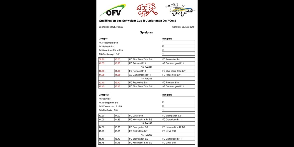 Das zweite Highlight findet dann am Pfingstmontag in Flawil statt. Dann nämlich steht die Titelverteidigung im Ostschweizer-Cup auf dem Programm. Der Gegner dort wird um 9:15 Uhr der FC Frauenfeld sein.