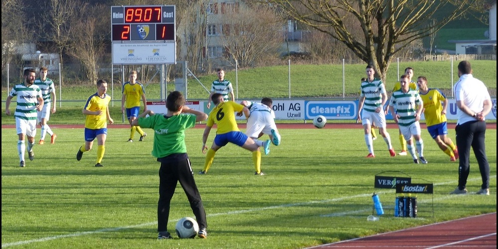 Die 350 Zuschauer kamen auf dem Sportplatz Rüti in Henau/Uzwil bei schönstem Frühlingswetter in den Genuss einer spannenden, fair geführten Partie zweier Spitzenteams der 2. Liga interregional. Das Uzwiler Team von Cheftrainer Sokol Maliqi konnte die leichte Überlegenheit zum vierten Sieg im vierten Spiel nach der Winterpause ummünzen. Die Überlegenheit der Gastgeber zeigte sich im Chancenplus, inbesondere durch eine Top-Chance von Yanick Lanker in der ersten Minute und zwei Treffer an die Torumrandung.