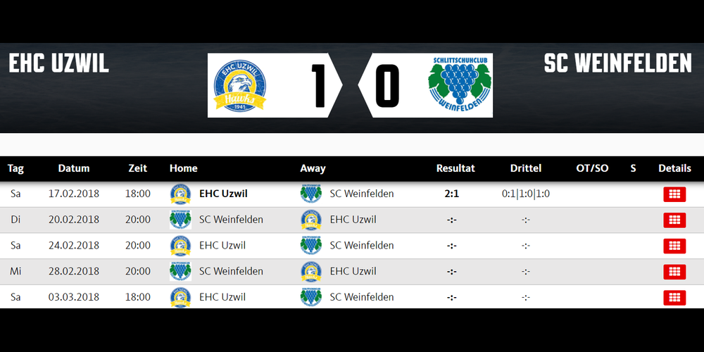 Am Dienstag, 20. Februar 2018, geht gleich weiter mit der zweiten Partie der Playout-Serie. Die Partie SC Weinfelden gegen den EHC Uzwil wird im Stadion Güttingersreuti um 20:00 Uhr angepfiffen. Hopp Uzwil!