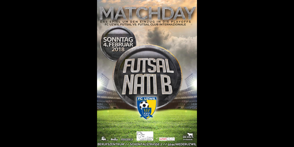 Am kommenden Sonntag, 4. Februar 2018, findet die siebte Futsal NLB-Runde in der Sporthalle BZWU in Niederuzwil statt. Der FC Uzwil Futsal als Tabellenführer in der Gruppe 6 kann mit einem Sieg oder Unentschieden gegen den zweitplazierten Futsal Club Internazionale aus Steckborn den direkten Einzug in die NLA-Aufstiegsplayoffs schaffen.