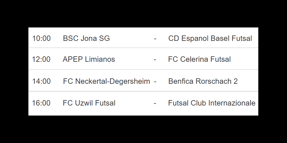 Der FC Uzwil Futsal ist gut in Form. Zuletzt kanterte das Team am sechsten Spieltag in Degersheim den FC Celerin Futsal 12:0 nieder. Torschützen waren: 8' David Levi, 10' David Levi, 13' David Obrist, 14' Simon Obrist, 16' Eigentor Joao Pereira, 16' David Obrist, 23' David Levi, 26' Bujar Sejdi, 27' Simon Obrist, 33' David Levi, 34' Simon Obrist und 37' Dario Koller. Eine bedeutend schwerere Aufgabe wartet jetzt auf die Uzwiler Truppe.