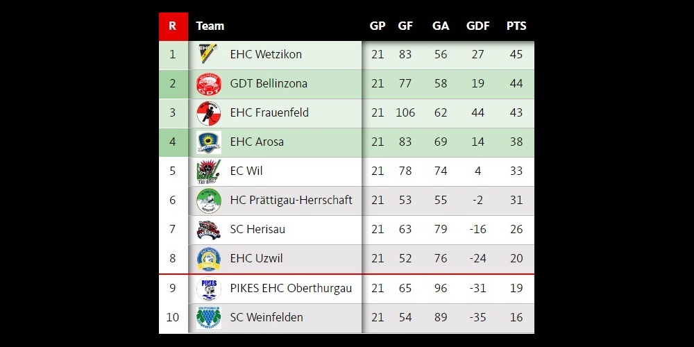 Der EHC Uzwil geht mit 1 Punkt Vorsprung ins Rennen und könnte sich mit einem Heimsieg eine mehr als wünschenswerte Erleichterung verschaffen. Die Chancen dafür stehen gut, denn auch die Oberthurgauer sind trotz Trainerwechsel nicht besser in Fahrt gekommen und sind sogar unter den Strich auf die Abstiegsplätze gerutscht.