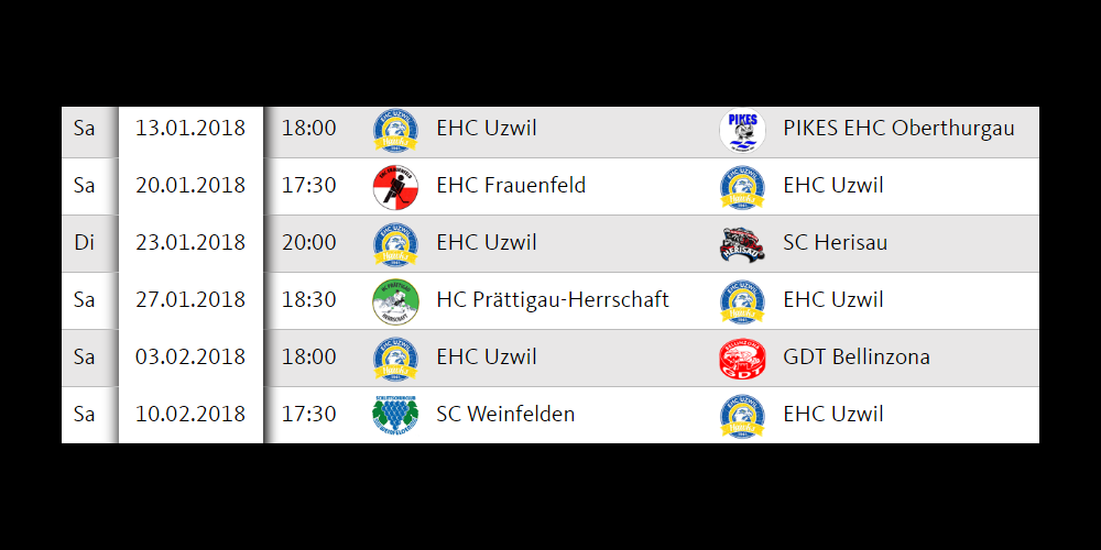 Der Kampf um die Playoff-Plätze geht in die entscheidende Phase. Am Samstag, 13. Januar 2018, empfängt der EHC Uzwil den direkten Konkurrenten um Rang 8 in der Uzehalle. Spielbeginn ist um 18:00 Uhr.