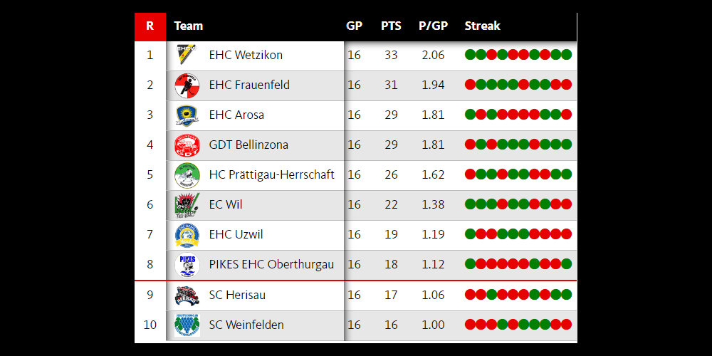 Im Testspiel vor Saisonbeginn hatte man die Tessiner in Bellinzona schlagen können. Zuhause kassierte man dann am 28. Oktober 2017 eine unglückliche 3:4 Niederlage (nach 3:0-Vorsprung). Für den EHC Uzwil geht es jetzt aber primär darum, in der Tabelle nicht noch weiter hinabzurutschen. Im Fernduell um die Playoff-Plätze gegen Herisau, Pikes Oberthurgau und Weinfelden ist sehr eng geworden. Nur jeweils 1 Punkt trennt die vier letzten Teams. Erstaunlich ist die Tatsache, dass der EHC Uzwil diese Saison ein Team bereits zweimal geschlagen hat, den EHC Wetzikon, der die Tabelle anführt. Daraus lässt sich leicht schliessen, dass in jeder Partie Punkte drinliegen.