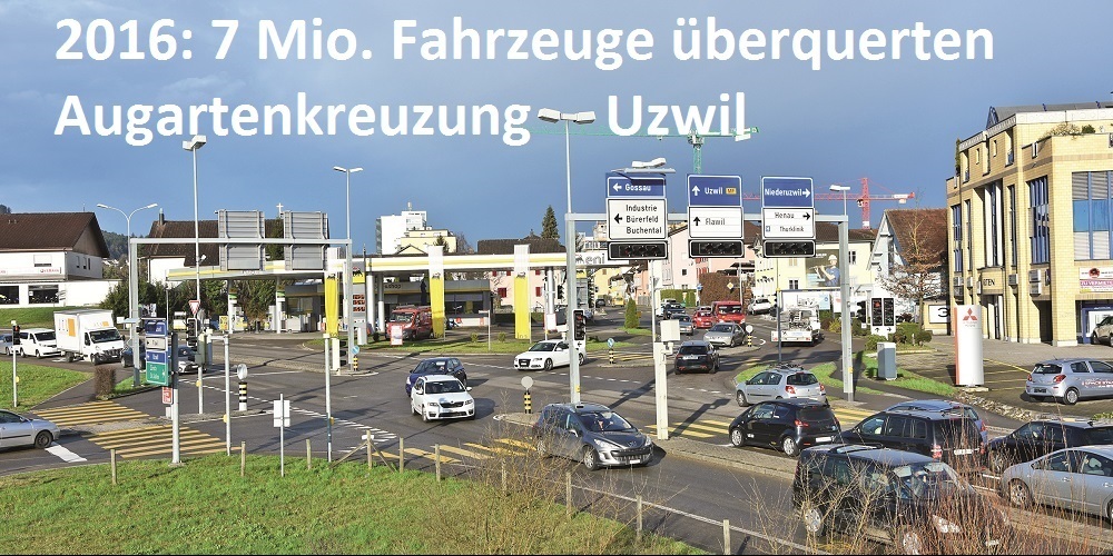 Auch für den Kanton ist klar: Der Knoten Augarten muss umfassend saniert werden, eingebettet in ein grossflächiges Gesamtkonzept. In die Betrachtung gehört das gesamte Gebiet vom Kreisel in Oberbüren über die Autobahnzubringer, die Augartenkreuzung und die Kreuzung Gupfen-/Meisenstrasse. Dazu haben der Kanton, das Bundesamt für Strassen sowie die Gemeinden Oberbüren und Uzwil eine gemeinsame Vorstudie für den künftigen Verkehrsbetrieb erarbeitet. Im nächsten Schritt geht es 2018 ans Vorprojekt, dann ans Projekt. Ziel des Kantons ist es, 2020 mit den Bauarbeiten zu starten.